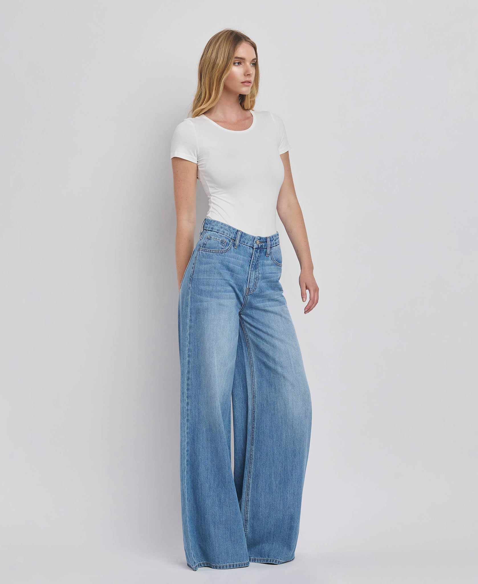 Elevate your denim game with our FM Super High Rise Wide Leg Jeans. Crafted from comfort stretch denim, these jeans feature a flattering super high rise waist and a wide leg silhouette for a sophisticated look. Finished with a sleek hem, these full-length jeans are a must-have for every fashion-forward individual.